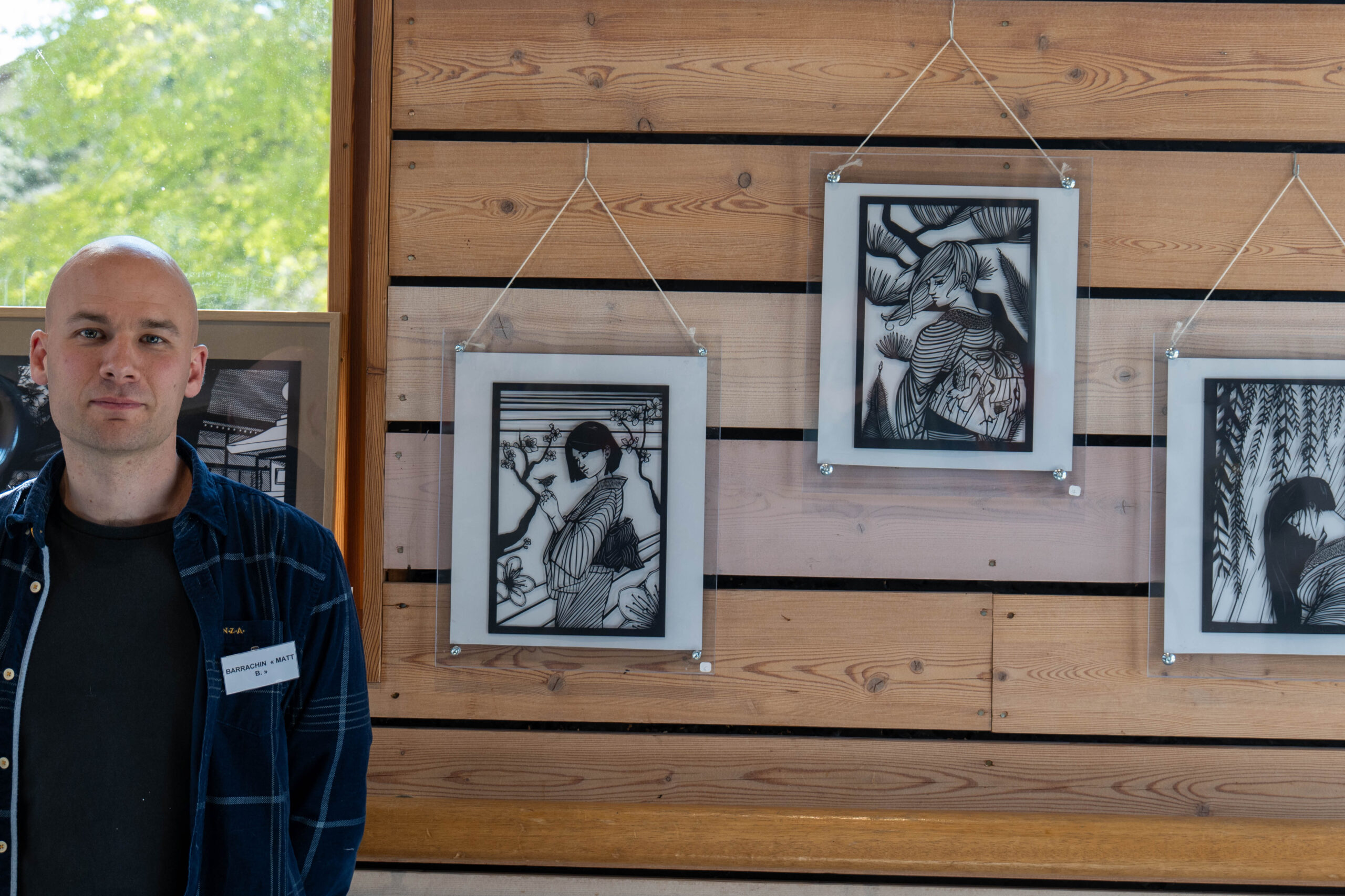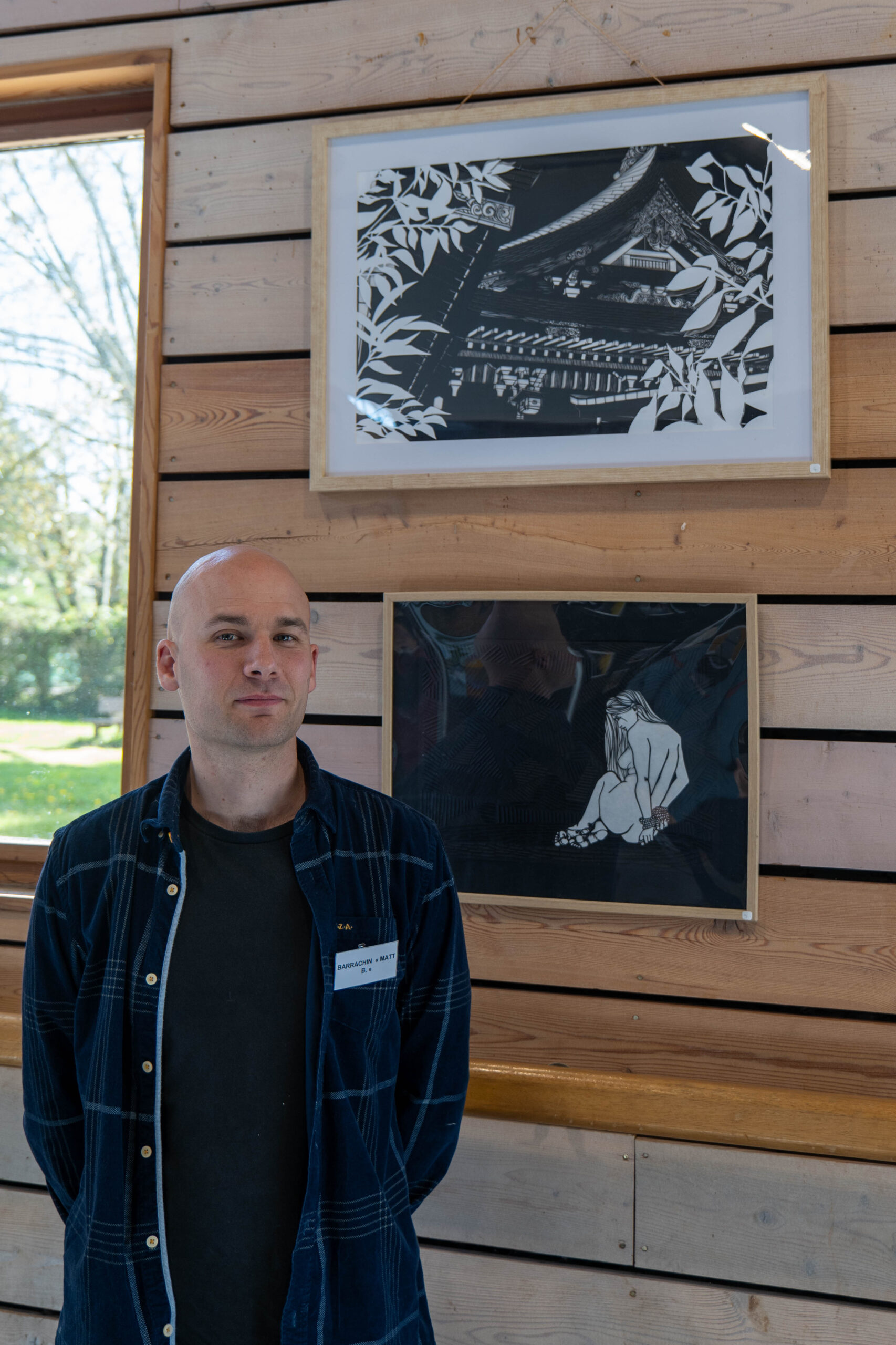 • Le Kiri-e (Papier découpé) : Beaucoup d’entre vous ont été surpris par le relief de mes pièces sur papier Carb’On. Les micro-volets pliés et les hachures sculptées à la lame ne se révèlent vraiment qu’en vrai, lorsque la lumière joue avec les ombres portées.